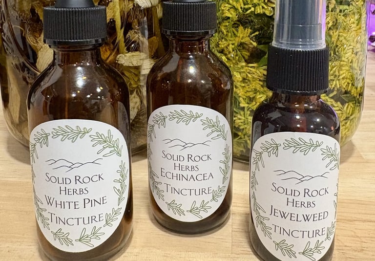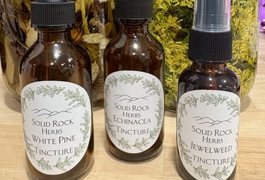 Our medicinal tinctures serve a variety of purposes; from easing digestion and coughs, to relieving the itch of poison ivy. We have tinctures for boosting the immune system, staunching a bloody nose or wound and improving circulation.